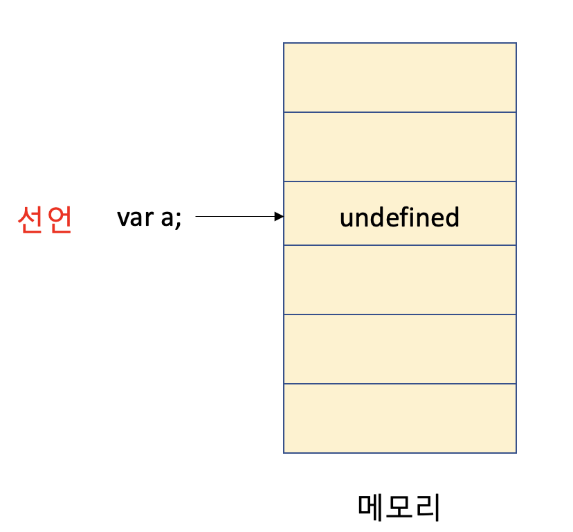 1. a가 들어갈 메모리 공간을 확보하고 undefined를 저장한다.
