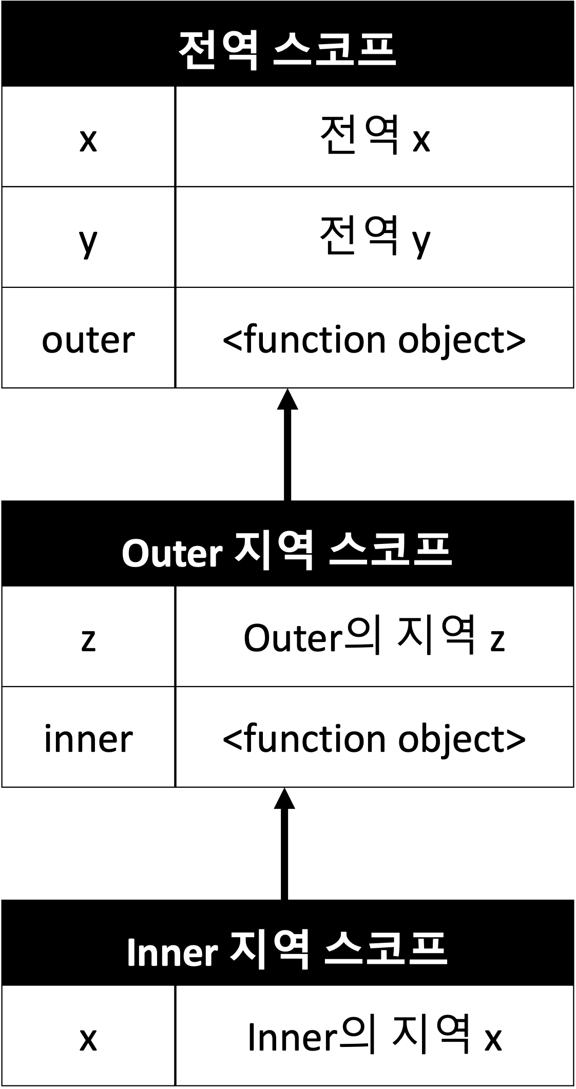 - 상위 스코프 방향으로 이동하며 선언된 변수를 검색