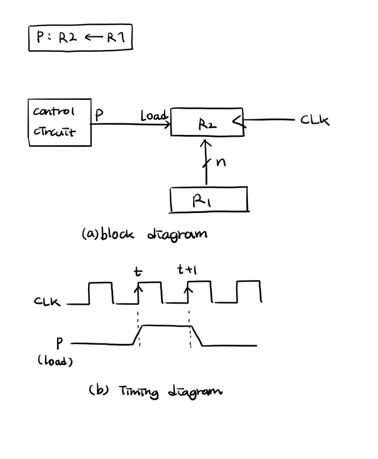 시간 T에서 위와같은 레지스터 전송이 수행하라는 식으로 작성한다.