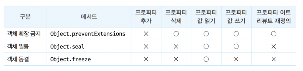 중첩 객체 까지 동결해서 변경이 불가능한 읽기 전용의 불변 객체 (재귀적으로 Object.freeze 메서드 호출)