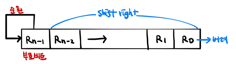 (산술 시프트면 부호를 살려줘야 하므로 그 전 비트 Rn-2는 그냥 버려야 하는거 아닌가?! .. 사실 나도 이건 왜 이렇게 되는지 잘 모르겠당..ㅎ)