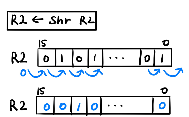 직렬 입력으로 0이 전송되는 것으로, 기호로는 shl, shr로 표현한다.